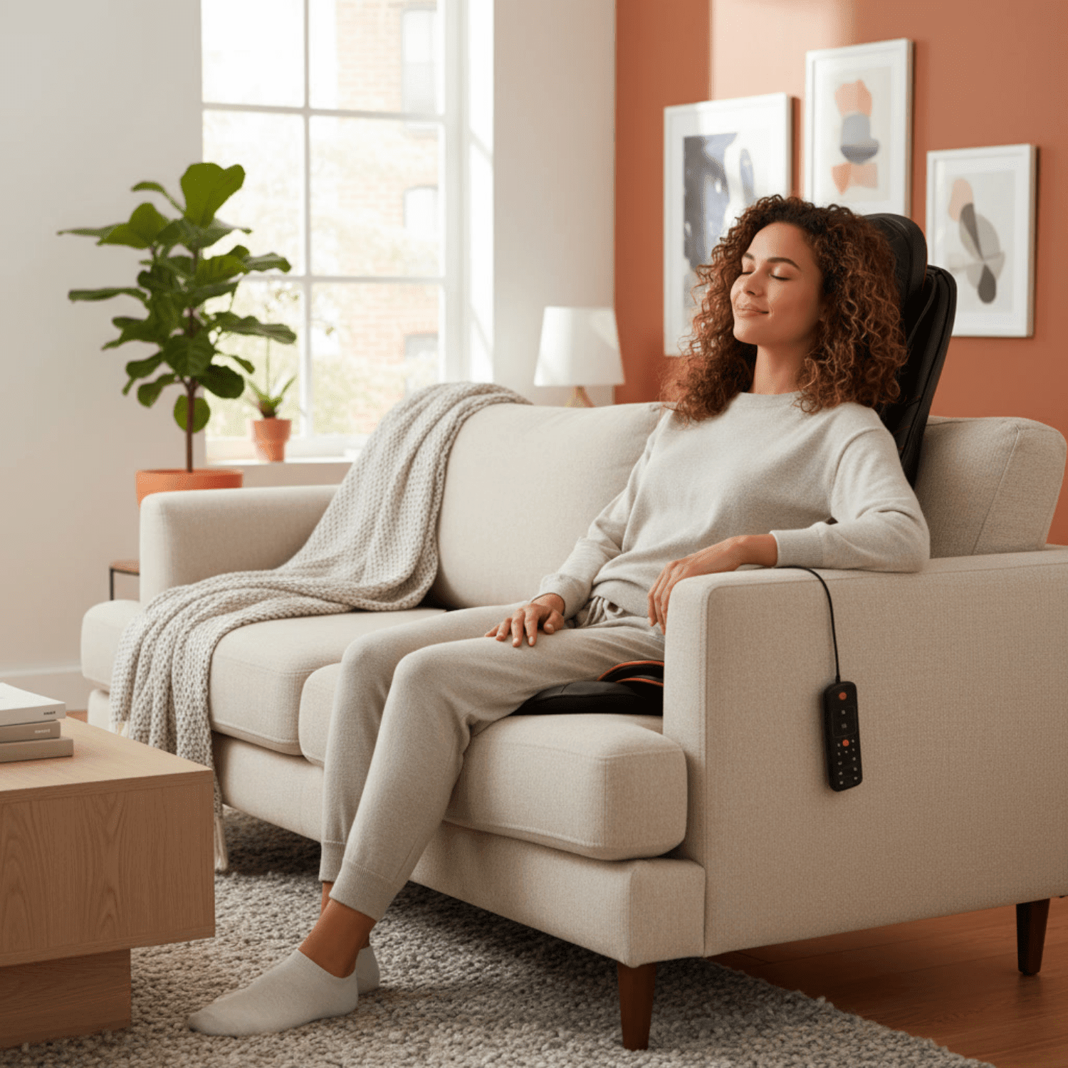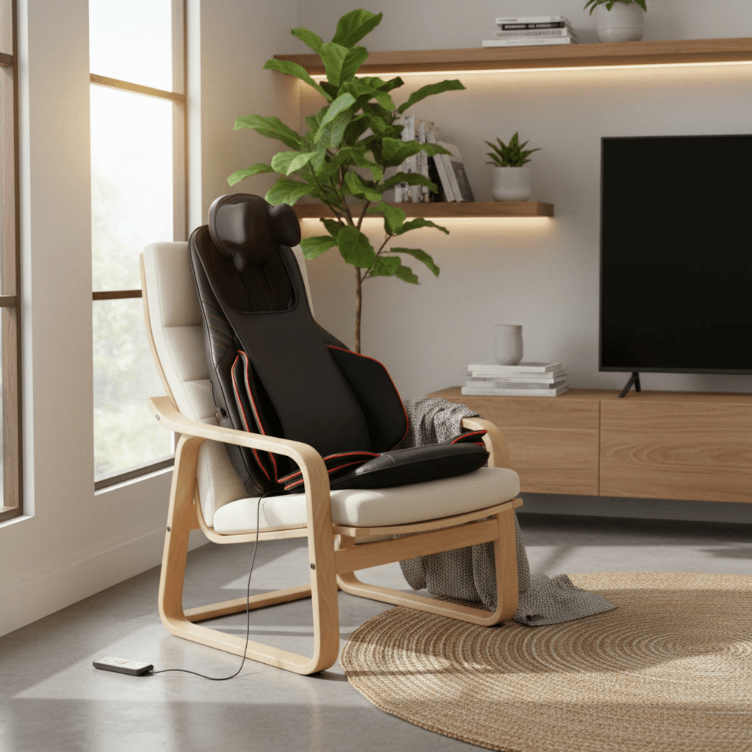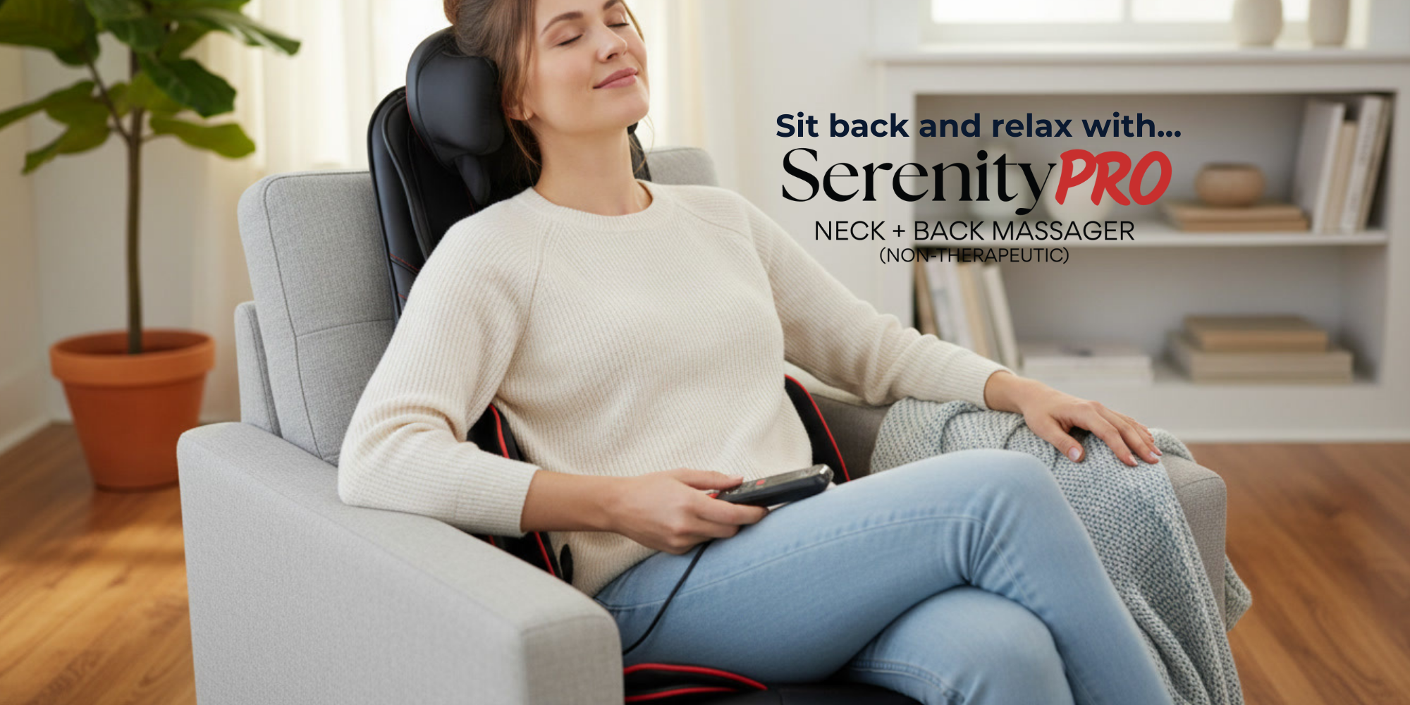 Meet the SerenityPRO Massager (Non-Therapeutic). Your easy, at-home way to add comfort to your favourite chair after a long day. It’s designed to bring a soothing, spa-like feel to your neck and back with simple controls and a cozy seat-style design that fits naturally into your routine.