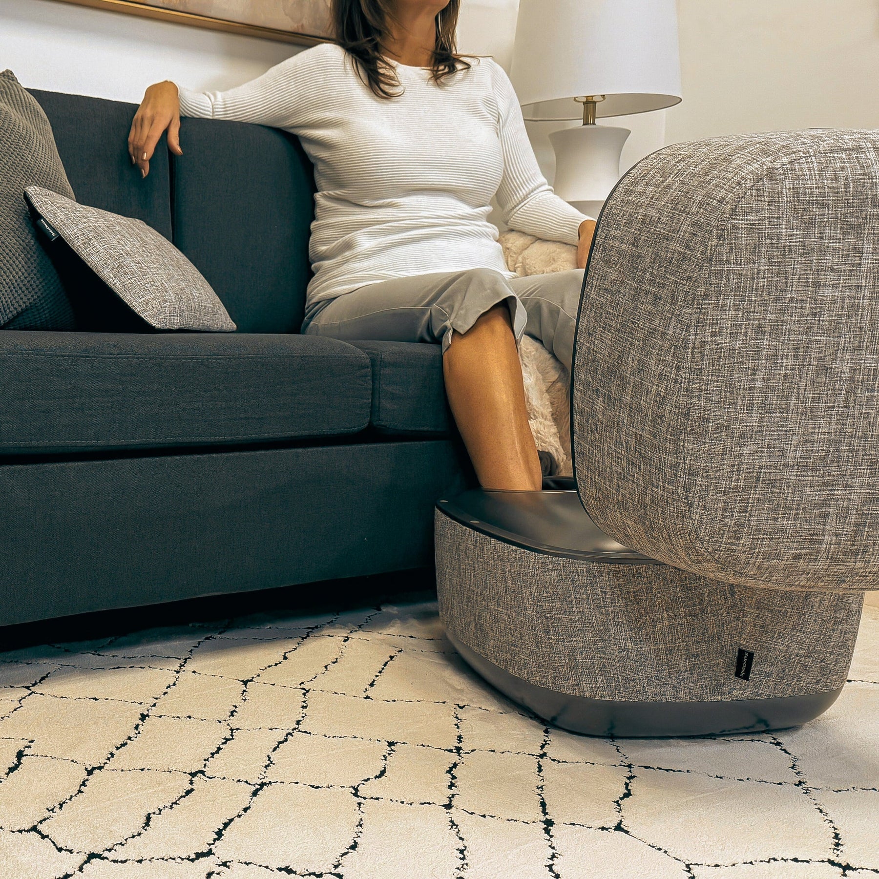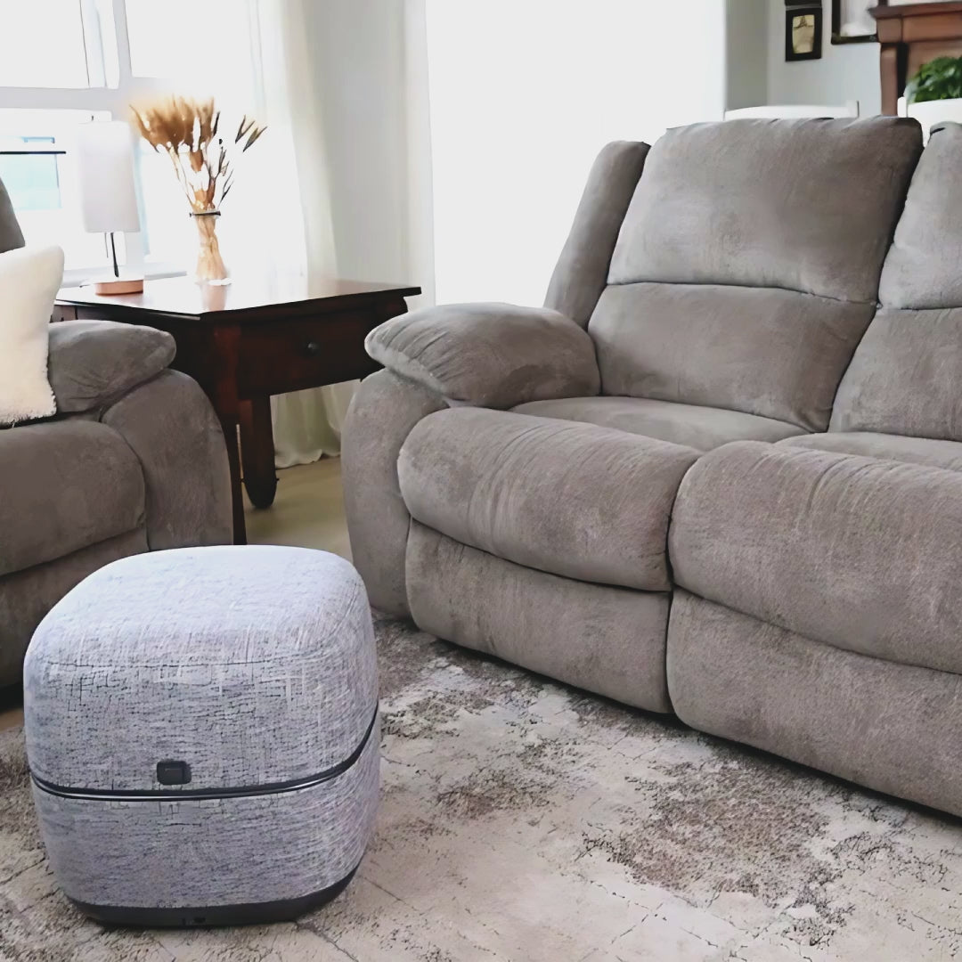 This stylish ottoman transforms into a rechargeable foot massager designed to bring cozy comfort to your routine. Enjoy at home, on the couch, or wherever you park yourself.
